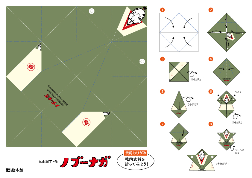 戦国武将絵本、三英傑そろい踏みを祝して「武将おりがみ」「武将ぬりえ」をダウンロードプレゼントします!